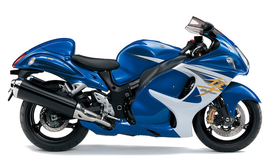 1999年、「ジ・アルティメット・スポーツ=究極のスポーツ」をコンセプトに誕生した「ハヤブサ1300」。 2007年、更に、高い空力特性を持つ独特なスタイリングに、排気量を1,340cm3 までに拡大したエンジンを搭載。 また、ライダーの好みに応じて出力特性を3つの中から選択できるS-DMS(Suzuki Drive Mode Selector)を搭載。 新たなカラーリングを身にまとったスズキが誇る大型スポーツモーターサイクルのフラッグシップモデル。
